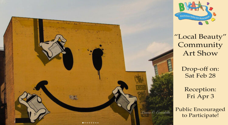 Celebrate the beauty of the Blackstone Valley in Massachusetts! Our “Local Beauty” community art show is open to ALL forms of art – photography, watercolors, acrylics, oil paintings, pastels, printmaking, sculpture, and more. The topic is our local Blackstone Valley in Massachusetts. We eagerly look forward to seeing local landscapes, architecture, visions, and interpretations of: