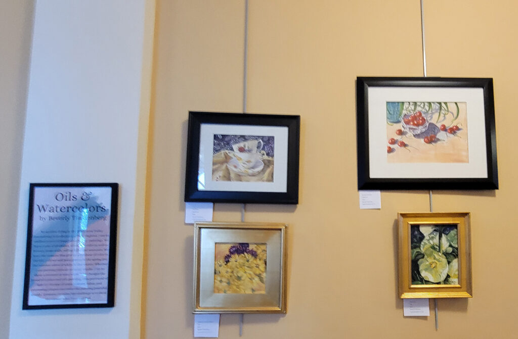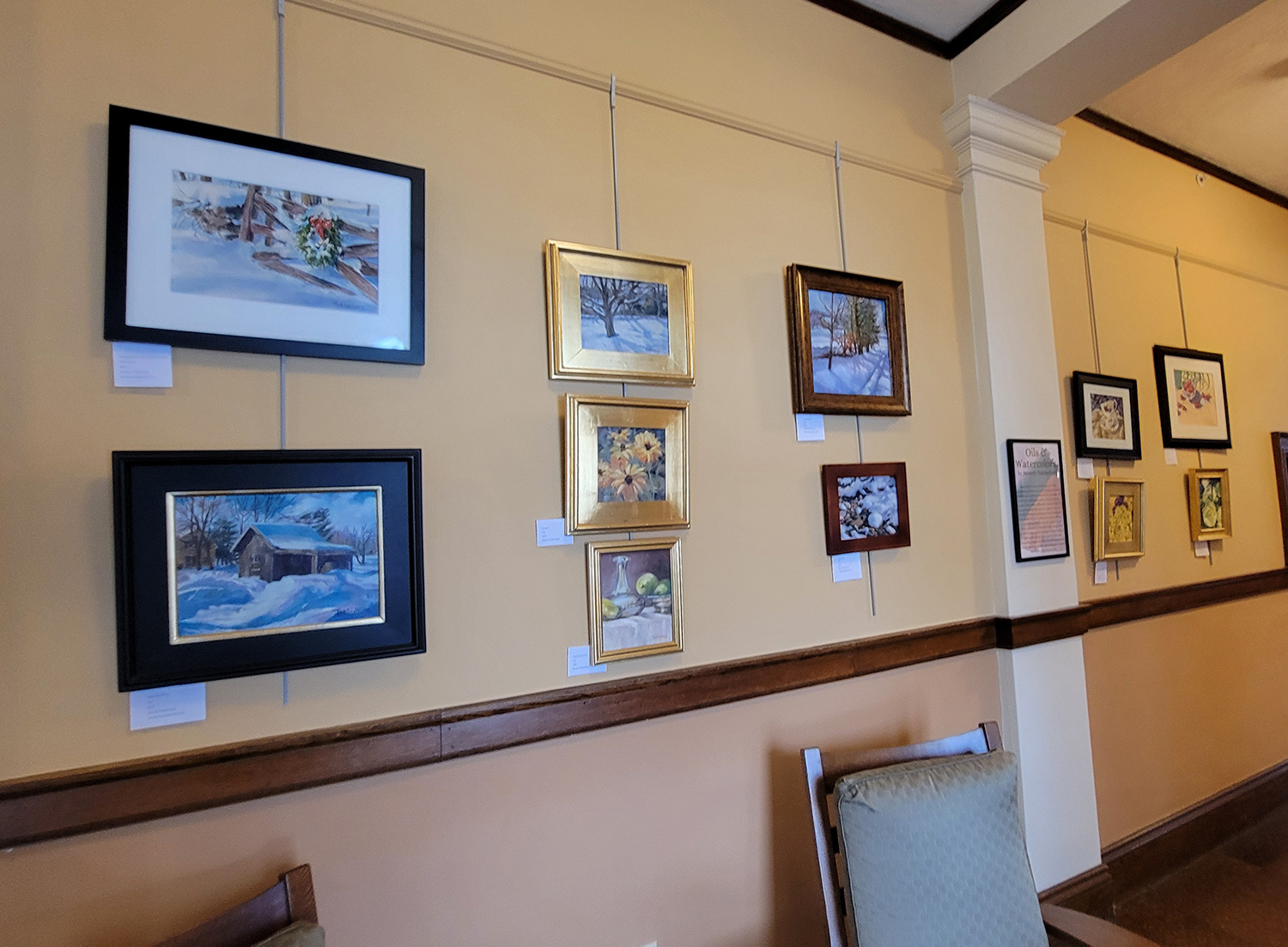 Talented artist Bev Tinklenberg has a solo show at the Charlton Public Library for the month of March 2026! The show is located in the main foyer area. Stop by any time the library is open to enjoy Bev’s artwork! Bev is one of our instructors – contact information is below these images.